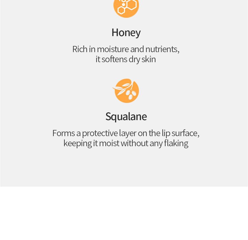 - MOISTURIZING INGREDIENTS: Infused with manuka honey and squalane, it moisturizes and nourishes the lips. Manuka honey, which also known as a natural antibiotic, also delivers calming effects for damaged skin, which is 10x more effective than regular honey.
